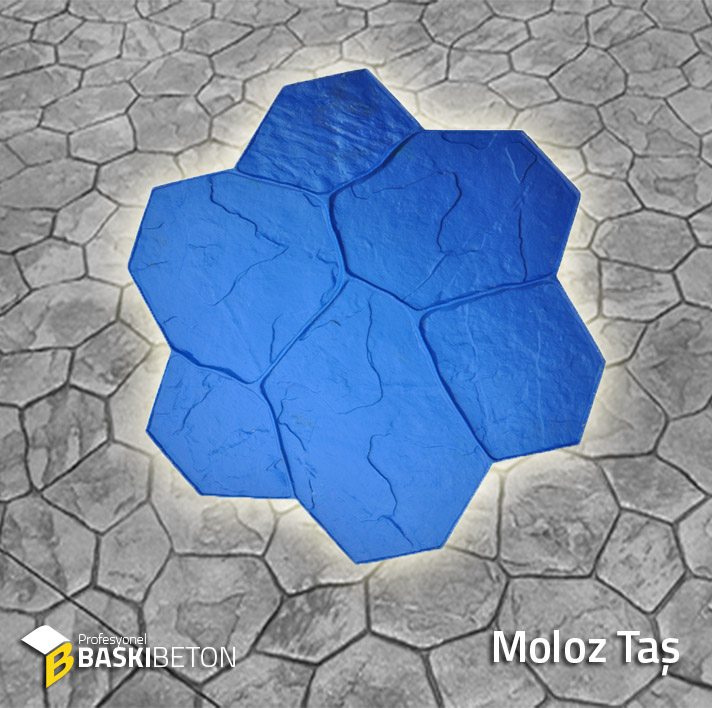 Desenli zemin uygulamasını belirleyen bu kalıplar, hazırlanan beton üzerine damgalama yöntemi ile uygulanmaktadır.